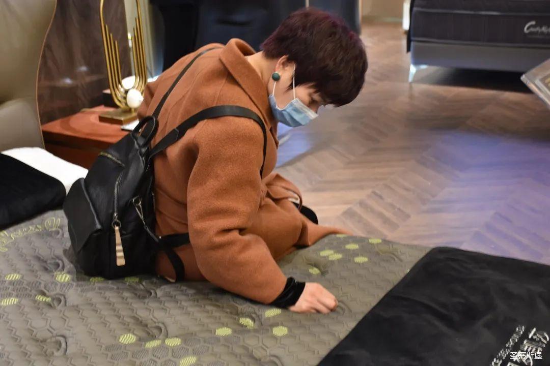 嘉賓們紛紛現(xiàn)場(chǎng)體驗(yàn)夢(mèng)凱莎床墊的科技睡感。