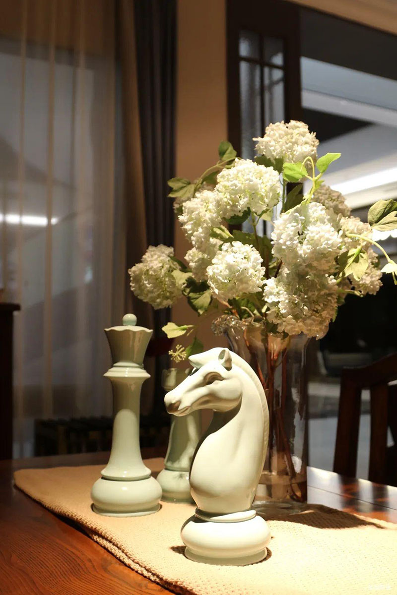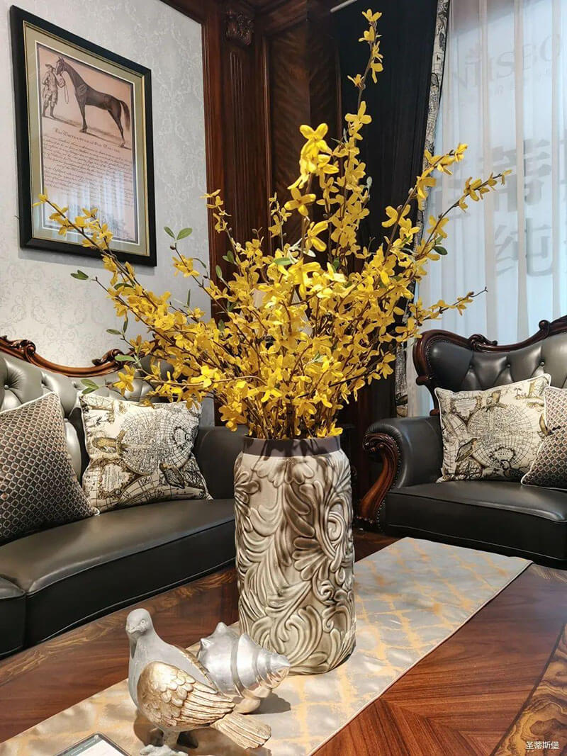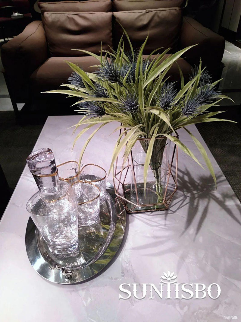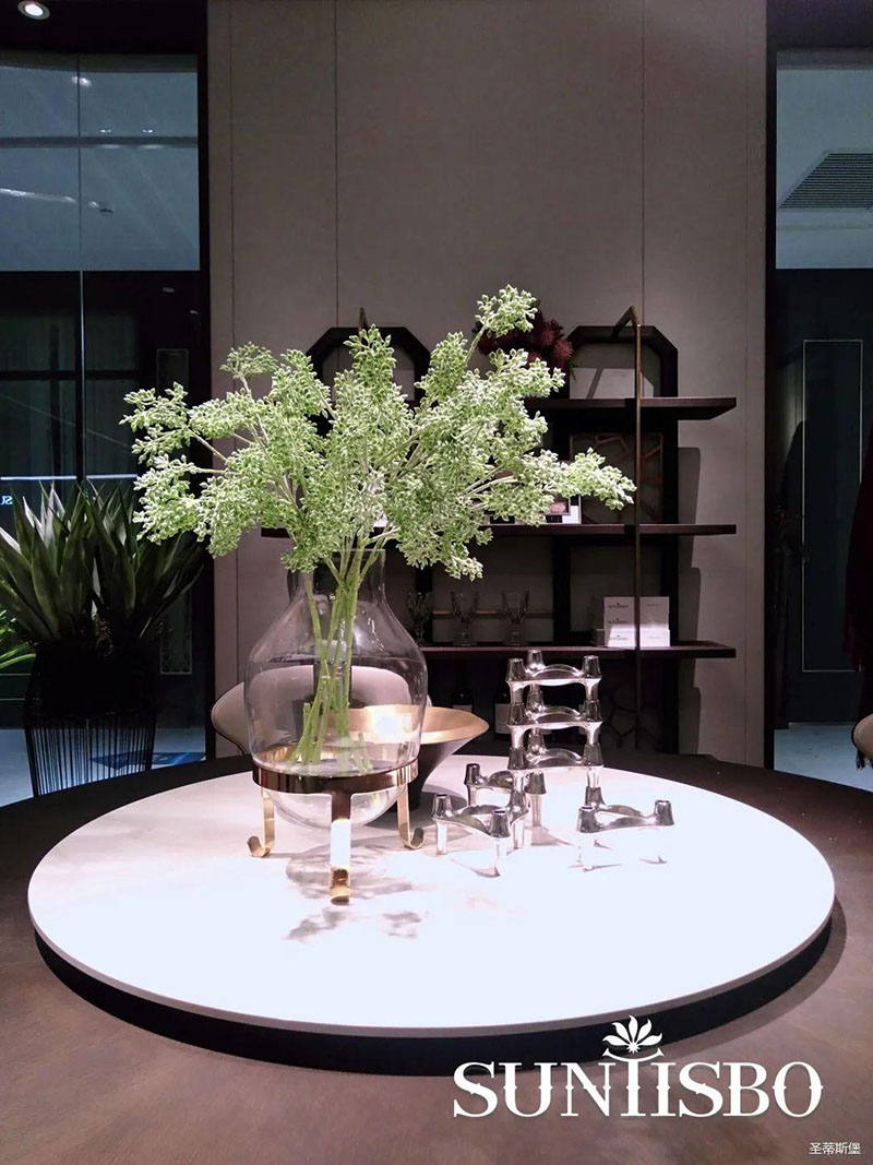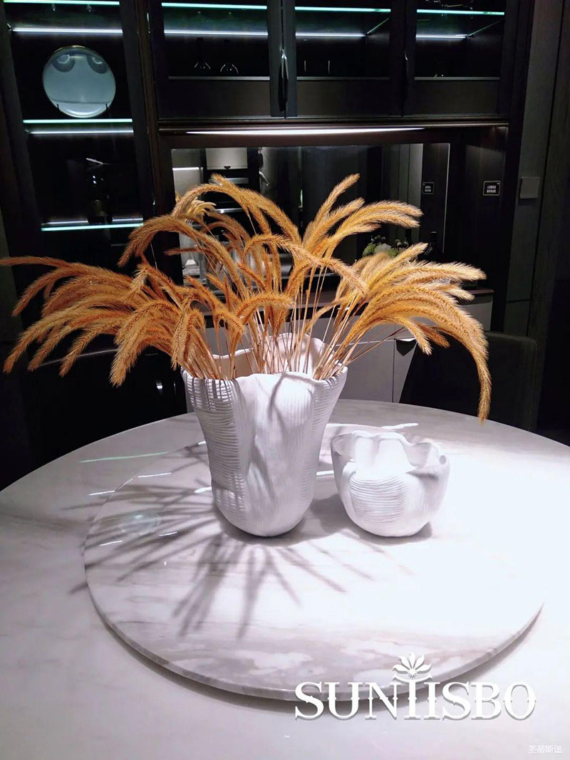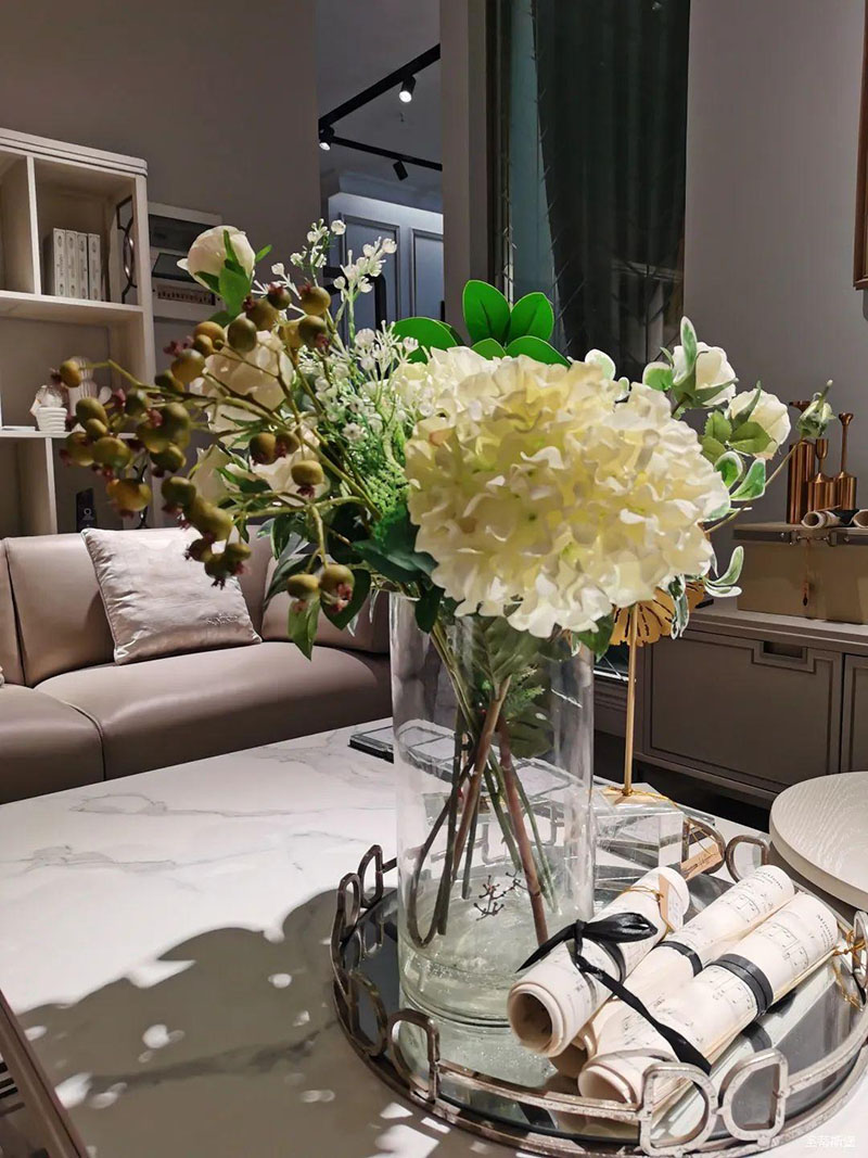 3.輕奢的配飾也需邀來似錦繁花相稱。色彩跳脫的植物更為亮眼,讓自然界的色彩與姿態(tài)應和空間之間的協(xié)調,傳遞空間與情感的共鳴。