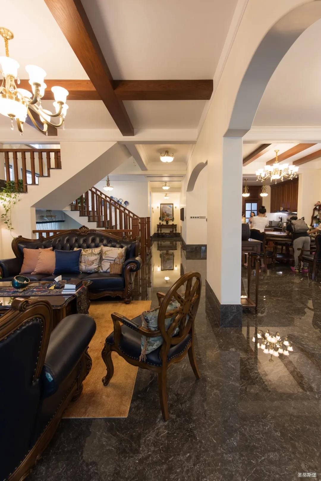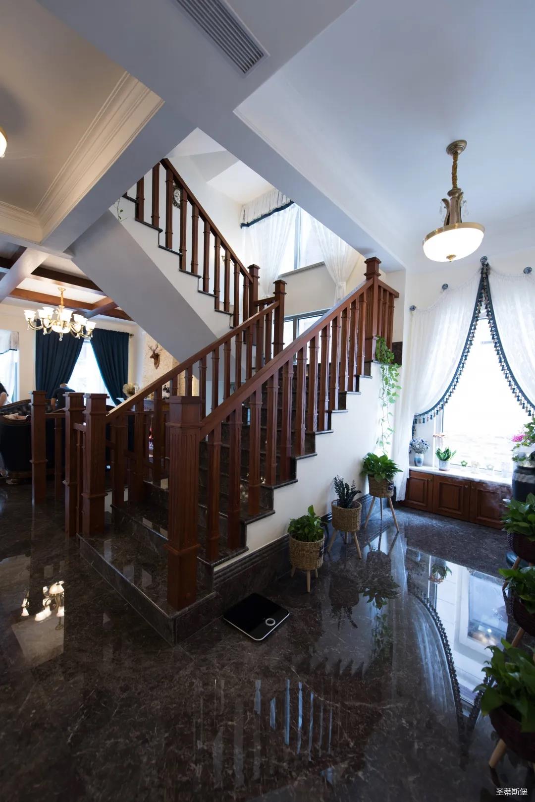 設計師根據業(yè)主喜好的風格進行設計,同時考慮了家庭成員不同的年齡層次,分別進行了不同氛圍的營造,通過旋轉樓梯進行空間貫穿,將不同空間的格調與氛圍聯(lián)系起來,達到和諧統(tǒng)一的效果。
