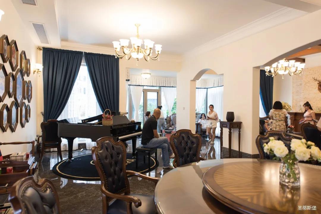 餐廳視線末端是一架鋼琴,與窗外景色相結合,擴大了視野,制造出移步易景的生活體驗。