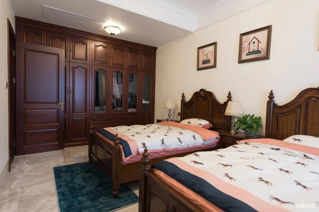 結合業(yè)主的需求,精簡打造客房,秉承了古典主義和諧對稱的原則。在中性復古的色彩中,調和出溫馨懷舊的味道。家具精雕細琢的品質,令空間沉浸在古典的氛圍里,讓居家生活親切而有靈魂!