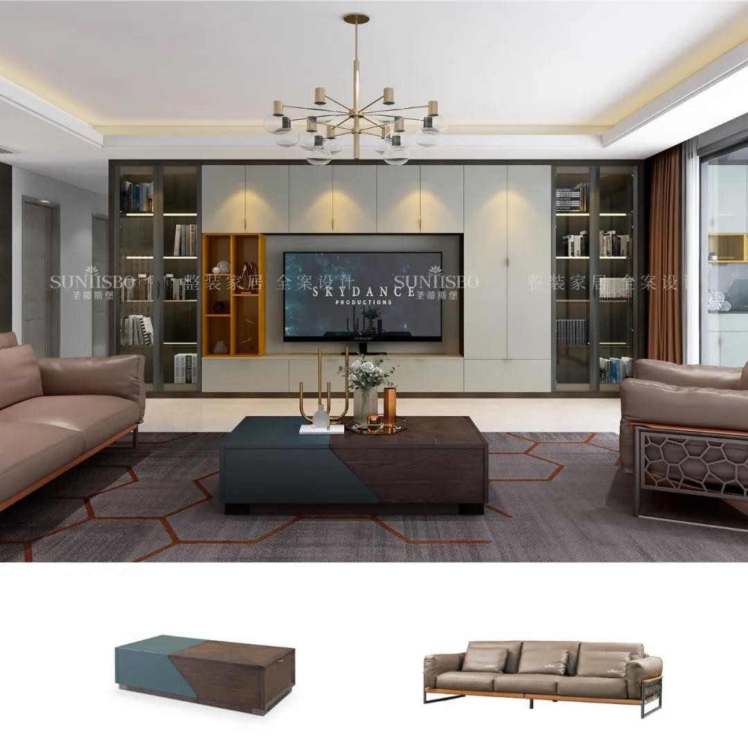 移步到餐廳空間,餐邊柜立面簡致,紋理細膩,展示區合理分配,增強了空間層次感,彰顯出飽滿的意式美感。實木柜面加以金屬拉手的裝飾,將極簡現代與高端質感融合,以簡約的形式表達出“簡而不失其華”的感染力。