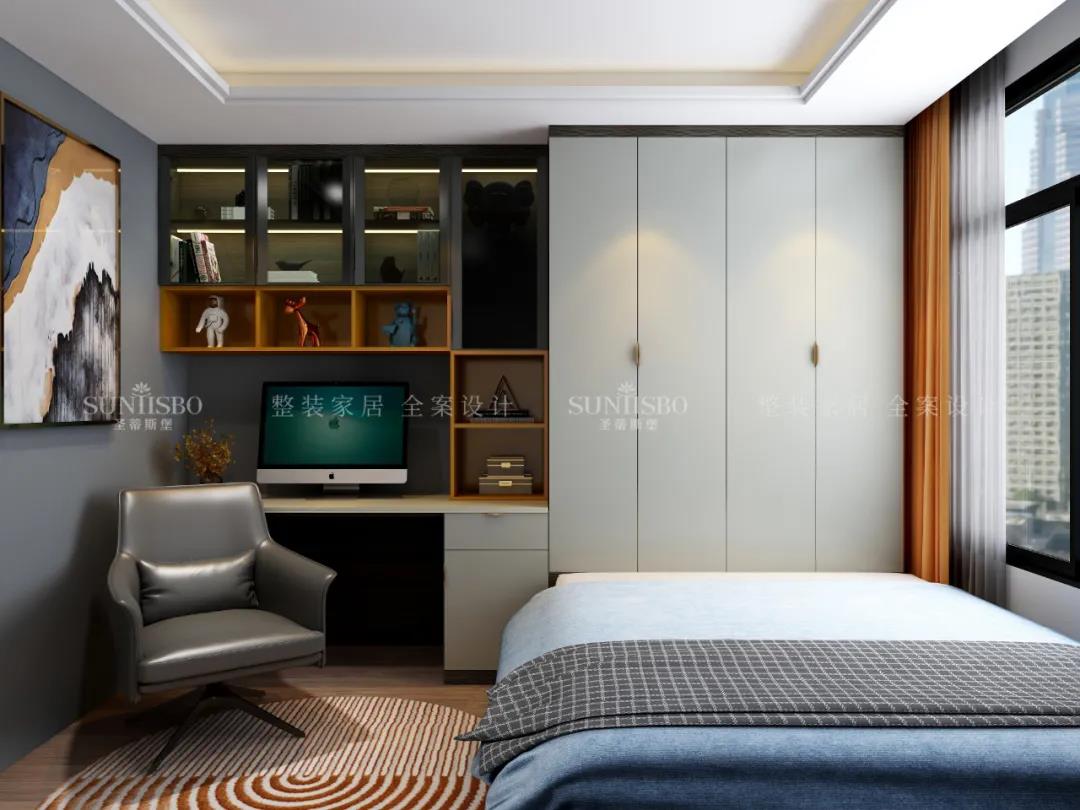 沿用主臥相同的顏色, 能很大限度的調節人的情緒。這種時尚不顯棱露角,卻能在舒適中徹底征服你。