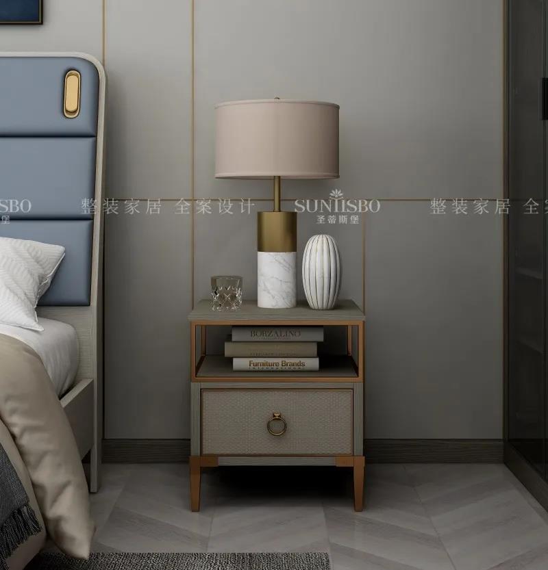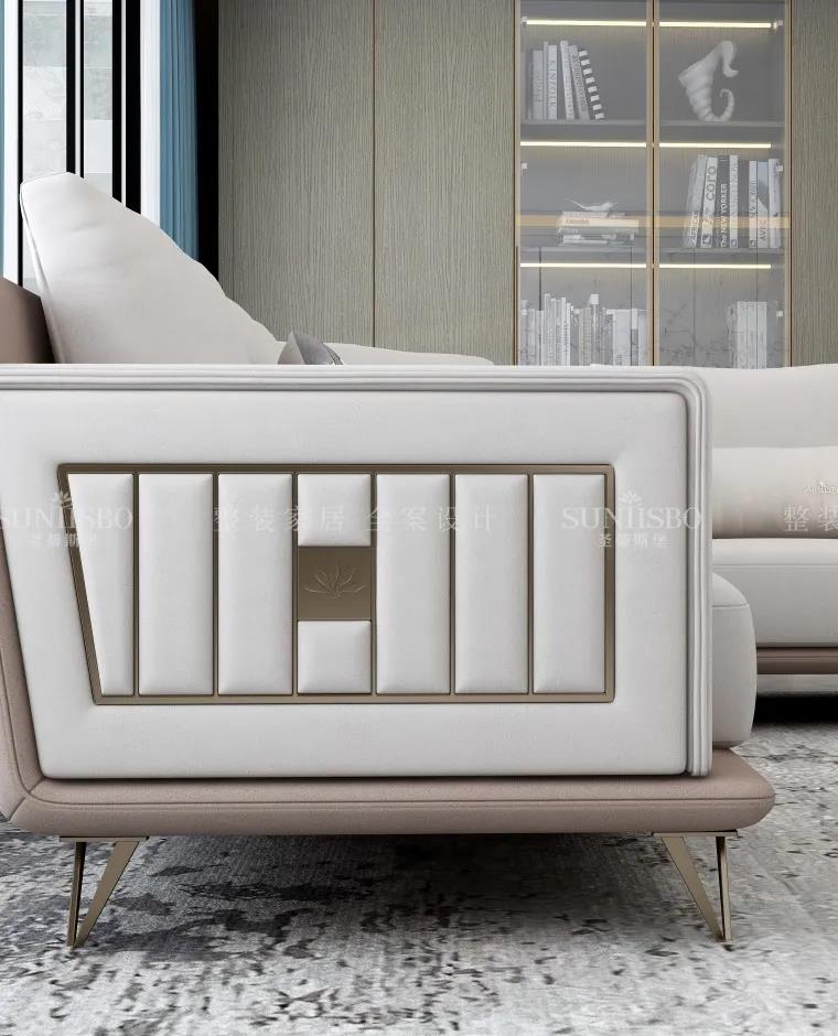 洛斯系列在現(xiàn)代時(shí)尚的基礎(chǔ)上還增加了許多輕奢的金屬元素,金屬元素在輕奢風(fēng)里毋庸置疑的存在。為什么人喜歡戴耳環(huán)、戒指、項(xiàng)鏈等首飾?為什么衣服、鞋子、包包上都能看到金屬元素的身影?從時(shí)尚圈到家居界,金屬元素憑借其獨(dú)特的質(zhì)感以及由內(nèi)散發(fā)的高級(jí)氣質(zhì),有著強(qiáng)大的包容性,提升風(fēng)格格調(diào),增添時(shí)尚氣息。運(yùn)用在家居中可成為整個(gè)空間的亮點(diǎn),成為時(shí)下家居裝修的潮流趨勢(shì),深受大家的喜愛。但是目前市面上采用金屬鑲嵌工藝的多數(shù)是在板木結(jié)合的基礎(chǔ)上,難度相對(duì)簡(jiǎn)單易操作。在洛斯系列里,是在實(shí)木的基礎(chǔ)上進(jìn)行金屬鑲嵌工藝,要求精準(zhǔn)度非常高,誤差不得超過0.5毫米,不然就會(huì)對(duì)不齊。在洛斯系列中,桌子的四角與腿部、柜類門板,沙發(fā)腿部,茶幾支架,餐桌臺(tái)面,床品外框等都將金屬恰到好處地融入到空間的每個(gè)角落,讓空間擁有輕奢的高級(jí)感,提升空間的質(zhì)感。將優(yōu)雅謙遜的都市精致感全面呈現(xiàn),讓裝修冷中帶暖、沉靜精致,也向人們展示了一種精致的生活方式,更為整個(gè)家注入靈動(dòng)氣息。