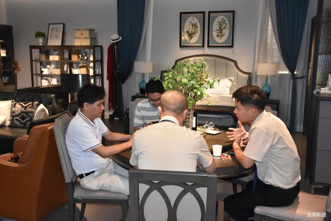展會期間,全國家居建材連鎖巨頭—紅星美凱龍集團鄭總一行蒞臨必一運動營銷中心進行參觀交流。集團領導熱情接待,雙方進行了深度洽談,并一起參觀了洛斯、里奧、洛卡等展廳。