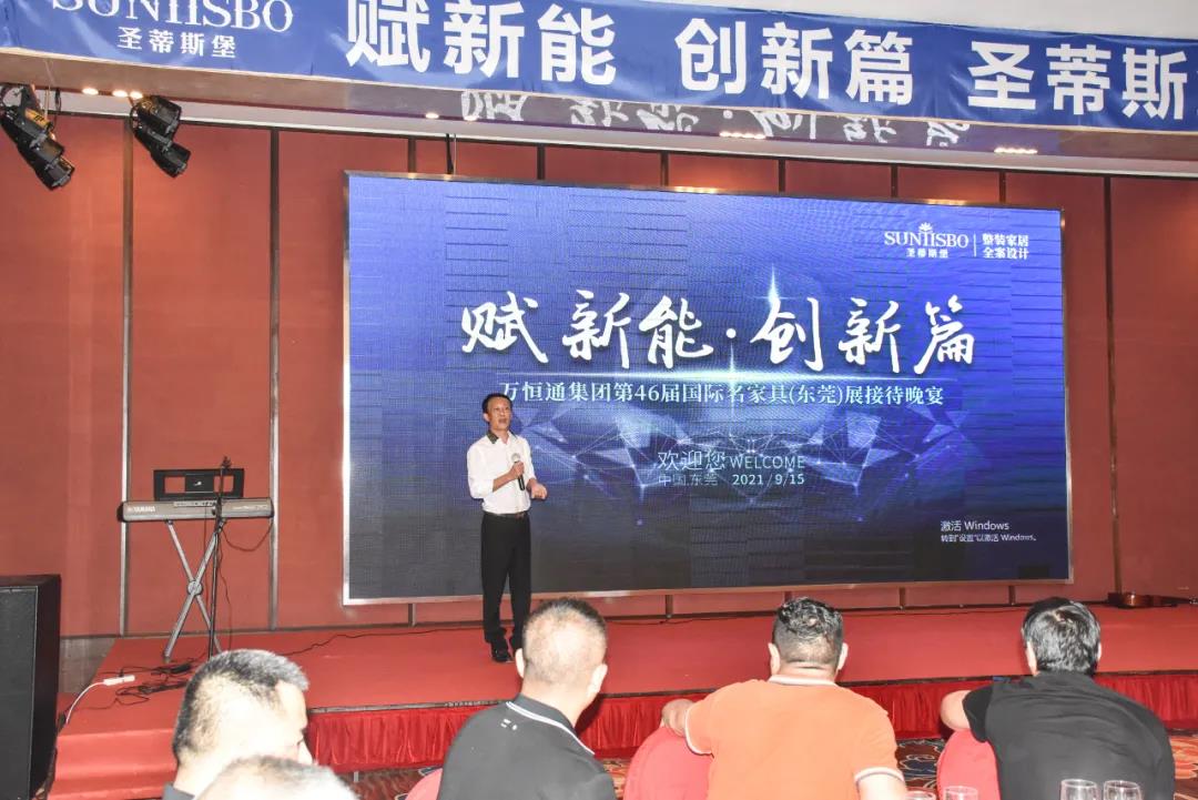 9月15日晚6時許,以“創新能,賦新篇”為主題的必一通集團第46屆國際家具展接待晚宴在虎門豐泰花園酒店舉行。