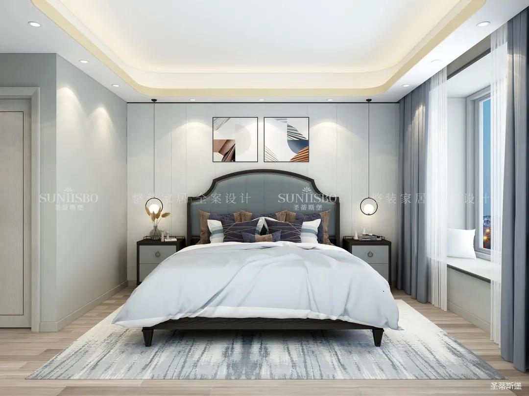 主臥整體暖色色系為空間注入了專屬調(diào)性,高明度的家具色彩與整體空間區(qū)分,透過材質(zhì)肌理與光線相互交疊,傳達(dá)著空間里安定溫暖的情緒。立體輕奢的床尾凳,提示著空間主人對(duì)時(shí)尚的高質(zhì)量生活追求。