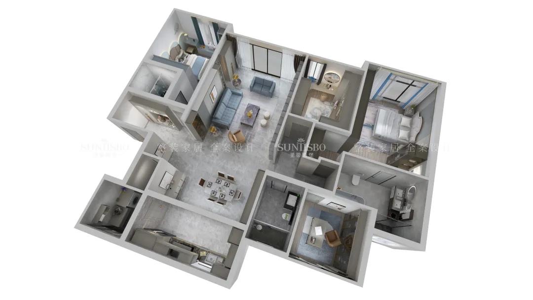 恒大四季上東|147㎡| 時尚簡奢|沈陽本案例是一套面積147㎡的三居室,位于遼寧省沈陽市,業(yè)主是一位從事繪畫工作者,深研過空間與色彩的關系,經過與設計師的溝通交流后,選定了沉靜的灰色調來表現(xiàn)空間的寧靜與放松。