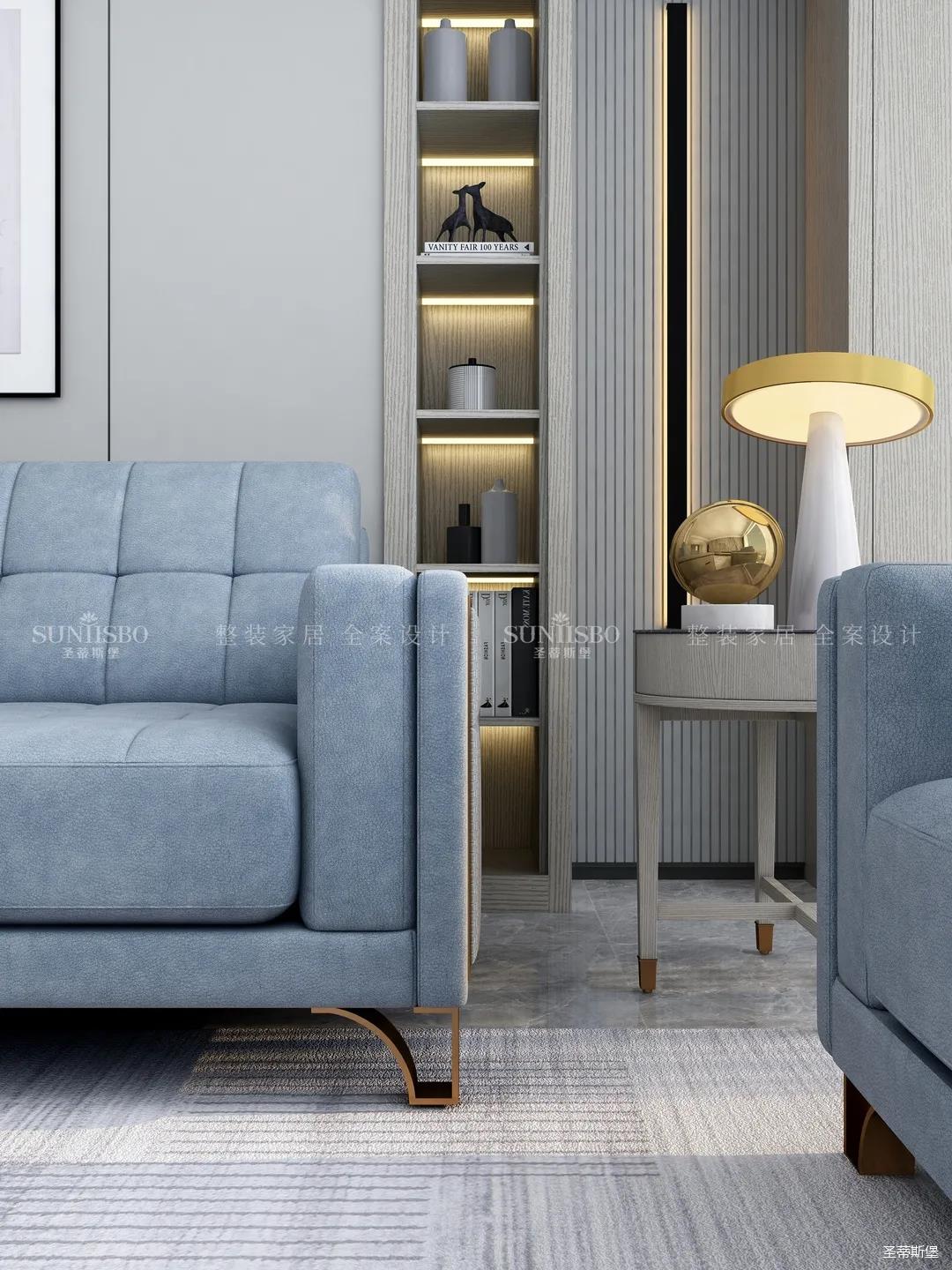 時尚簡約與現(xiàn)代簡奢的雙重美學在客廳中發(fā)揮的淋漓盡致,飽滿填充的親膚磨砂皮材質沙發(fā),貼心呵護身體曲線,回家即可來一次舒適愜意的SPA。圍繞著時尚、舒適家的設計,剔除了傳統(tǒng)簡奢金屬堆砌,打造定制的實木柜體,在深灰與淺灰之間切換有度,盡顯大方自然。