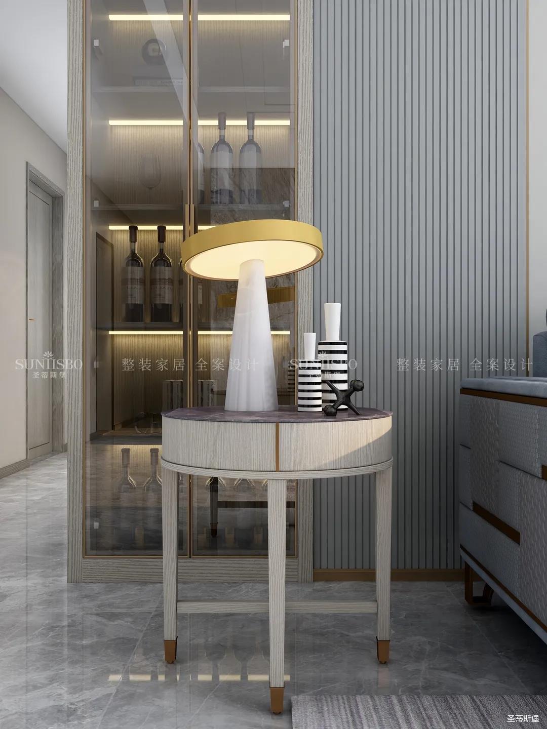 進入玄關區(qū)域就能感受到房主對時尚風格的偏愛,實木元素與簡奢金屬的碰撞,既有對材質的甄選,又有現(xiàn)代簡奢的品質感。穿衣鏡、換鞋凳、收納柜等藏漏有序的分區(qū),將屋主的生活歸納的井井有條。
