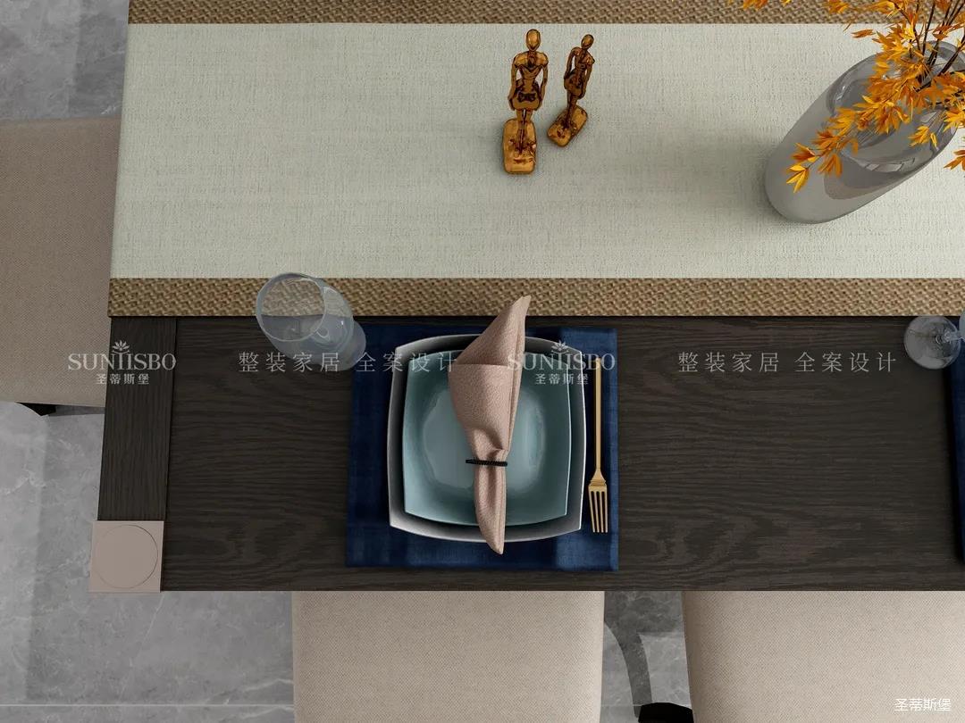 餐廳和客廳以大橫廳的形式展開,設計師將實木、玻璃、皮質、金屬等看似相互排斥的元素相互重組,讓餐廳呈現(xiàn)多元式的輕奢氛圍。深淺色彩,對稱型的定制柜,都讓空間形成強有力的質感對比。無論是午餐窗外的車水馬龍,還是晚宴的點點繁星,都能給屋主帶來良好的就餐體驗。