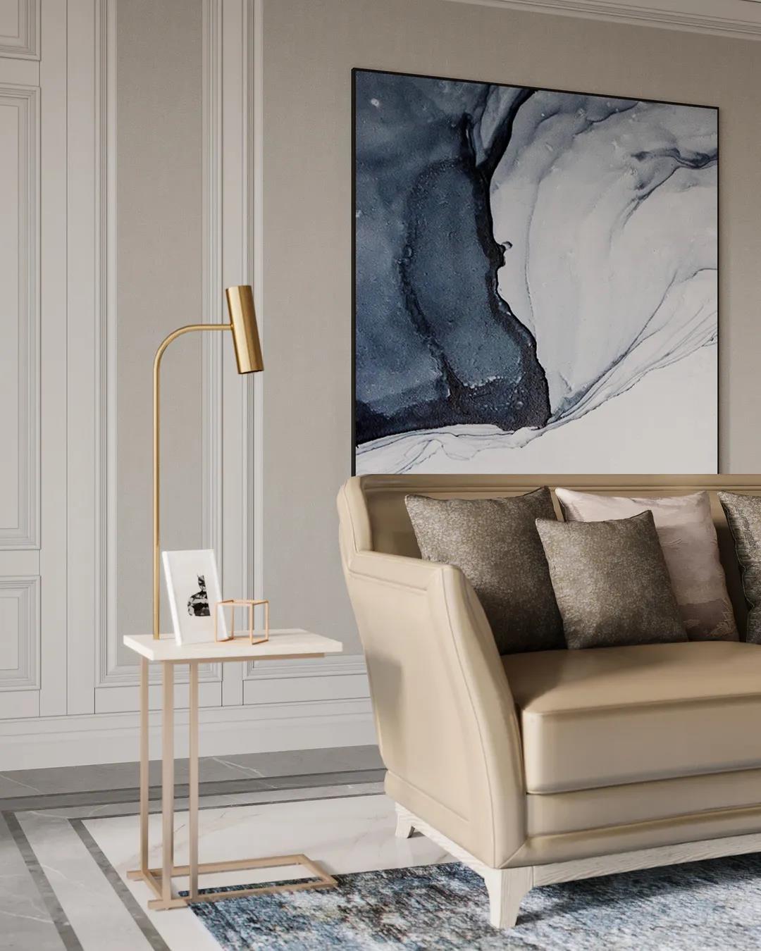 本案定位美式輕奢風(fēng)格,設(shè)計(jì)師提取了業(yè)主喜歡的顏色添加至空間中,并運(yùn)用金屬元素滲透到每一個(gè)空間,統(tǒng)一色調(diào)。在設(shè)計(jì)上,格局大而不空,以優(yōu)美線條雕琢空間語(yǔ)言,材質(zhì)肌理間的碰撞融合,打造出層次豐富的藝術(shù)感。